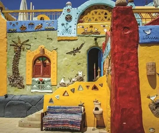 As you walk through the village, you will see homes painted in bright blues, greens, and yellows. Each color and symbol holds meaning for the families who live there. Craftsmen still create the same style of pottery that has defined Nubian art for thousands of years. Women weave baskets from palm fronds and reeds. Musicians play lively rhythms on the tambour, the kissar, and the arghul. The result is a blend of sound and color that creates a joyful, peaceful atmosphere.