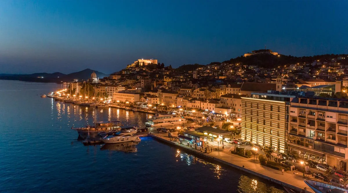 Terracotta rooftops tumble toward the Adriatic as narrow stone alleyways open onto quiet plazas and sea-view cafés. You may wish to wander the waterfront promenade, explore the UNESCO-listed Cathedral of St. James, or enjoy dinner overlooking the marina as the sun sets along the Dalmatian Coast.
