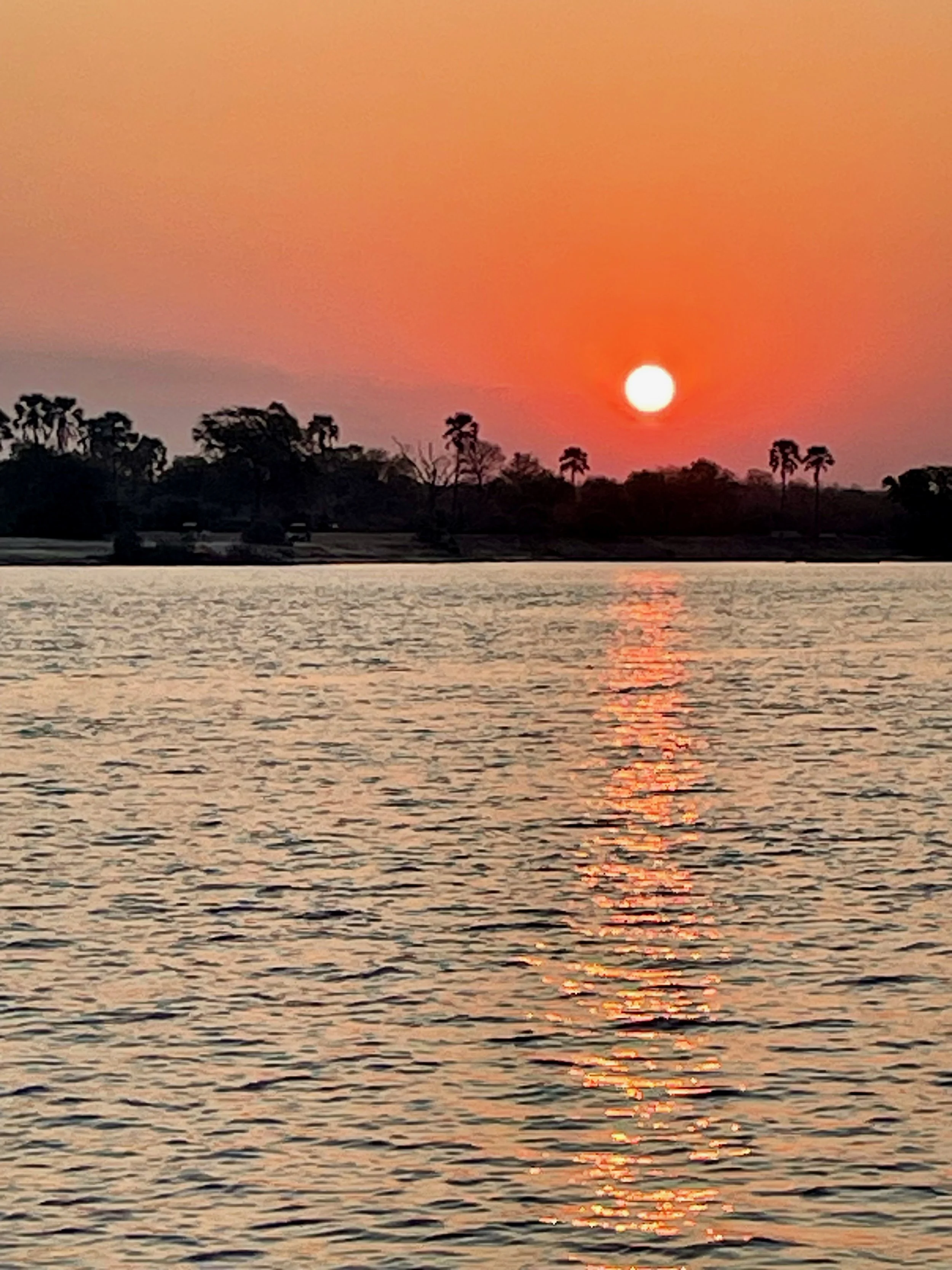Sip a sundowner while drifting along the Zambezi River, watching hippos, crocodiles, and elephants as the sky turns fiery orange.